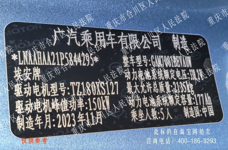 一、拍卖标的:川ABM8215埃安牌小型轿车一辆